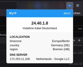 MyIP, Firefox tarayıcı kullanıcıları için geliştirilmiş bir eklentidir. Bu araç, kullanıcının mevcut IP adresini, yaklaşık konumunu ve internet sağlayıcısının adını görüntülemektedir. Kullanıcı dostu arayüzü sayesinde, IP bilgilerine hızlı ve kolay bir şekilde erişim sağlar. Eklenti, abonelik modeli ile sunulmaktadır ve web geliştirme alanında faydalı bir yardımcı olarak öne çıkmaktadır.